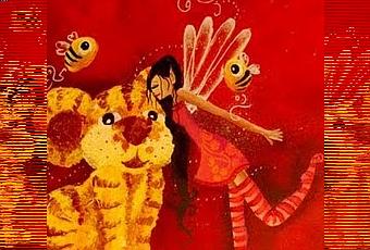 Beaucoup d'émotion et de confiance... Une histoire qui a fait naître cette toile sur laquelle une petite fée embrasse le museau plein de miel du petit tigre...