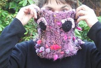 laine filée main de Coolclimates et laine de commerce pour les yeux et la bouche . le rose des yeux est cependant un filé main dentelle (offert lors d'une commande)