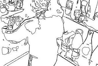 Muni de mon bâton de colle, de mes ciseaux et de trois quatre accessoires, je fabrique un joli cahier pour Alice qui fête ces six ans la semaine prochaine. Sur la page de gauche, je colle une photo de son papy jouant avec elle, talkie-walkie en main. Sur la page de droite, la même photo passée au tamis d’un logiciel, une version A4, trame de coloriage. Ainsi, sur une vingtaine de pages, elle pourra colorier papy ou encore sa sœur campée devant le frigo.