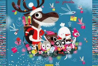 Bien sûr, on l’a décoré et on a fixé au plafond des guirlandes home made avec de magnifiques dessins de Marc Boutavant et Nathalie Choux découpés depuis deux années dans les magnifiques catalogues de Noël du Bon Marché (lequel porte toujours aussi mal son nom). Cette année, dans un style plus épuré et moins coloré, c’est Olivier Tallec qui a illustré le catalogue avec une mention spéciale pour les gommettes… Désormais une institution ces catalogues !