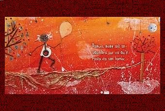 illustration Papi vit en équilibre sur son hamacPapi tient un ballon dans sa main tout en étant en équilibre sur des "restes" de hamac...