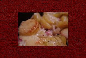Un plat de saison absolument délicieux ! Un plat absolument délicieux que je vous recommande en toute circonstance. Une recette de notre irremplaçable Mimi (ma belle-maman) qui a fait l'unanimité en décembre : un gratin dauphinois au fromage à raclette !Je vous assure, c'est tout simplement.....trop bon ! Quelques pommes de terre (attention "bio" !), un oignon, un peu de lardons (j'adore !), de la crème fraîche (ça fait pas d'mal si elle est légère, non ?) et pour finir, quelques tranches de fromages raclette, de préférence aromatisées au poivre (c'est bien meilleur !) qui viennent recouvrir ce plat à peine calorique.