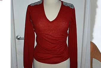 Donc mon mannequin et moi vous proposons deux hauts strassés en rouge ou noir, à vous de choisir...