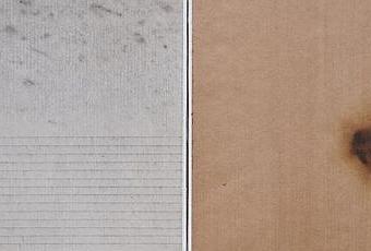 1 - " ligne et ombre " 40 x 20 cm ( crayon, pigments, cire, papier brûlé, colle )