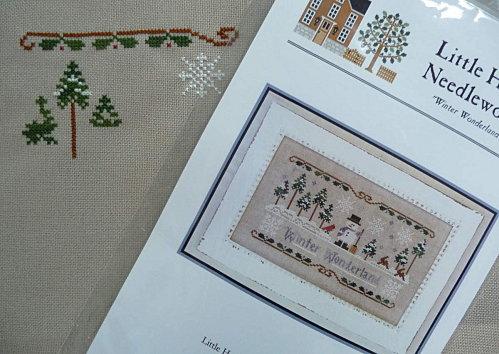 Voici mon nouvel "en cours" de saison ! Il s'agit du modèle "Winter Wonderland" chez Little House Needlewoks. C'est une fiche que j'ai reçu en cadeau lors de l'échange de Noël au club de point de croix. Je la brode sur une étamine 12 points. Quelques fils dégradés "Crescent Colours" sont necéssaires. La couleur indiquée pour les sapins me paraissait trop clair, j'ai finalement opté pour la nuance "Broccoli" plus près de la photo d'illustration.