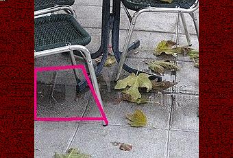Pour avoir une preuve, j’ai pris une photo, et pour que la preuve reste, j’ai entouré la flaque pour que tout le monde voie ce que tu me fais subir depuis tout ce temps et comprenne bien pourquoi j’en ai aussi marre de toi. J’ai mis une chaise dessus pour qu’elle ne sèche pas trop vite et pour que les gens marchent pas dedans, car si toi t’es pas maligne, moi je suis sympa.