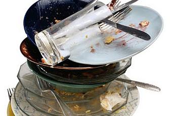 Je réveille les gars à 7h30 les matins d'école. Ce matin, j'entre dans la chambre de Gabriel, et mes yeux se posent accidentellement sur son pupitre. Là, devant l'écran d'ordi, trône fièrement une pile de .... vaisselle sale !