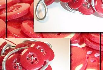 Quelques boutons amoureusement entremêlés , entrelacés de fil d’alu argenté formant l’un des plus beaux symboles d’amour : le coeur rouge.