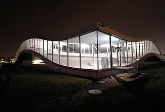 Pile en face de mon bureau, un rectangle tout en courbes et en rondeurs, dont la beauté réside aussi dans ce sol qui s'élève en arches douces de béton brut. Aucun mur, tout se traverse et traverse. La lumière est reine. On a construit autour d'elle. On s'y promène et même si on aime le plancher des vaches, on ne manquera pas d'être surpris par ces ailes chaloupées et chavirantes qui décollent nos pas. Une manière de provoquer la gravité et d'aiguiser la curiosité. Tout y est peut-être un peu trop gris pour le moment. Mais attendons le printemps.