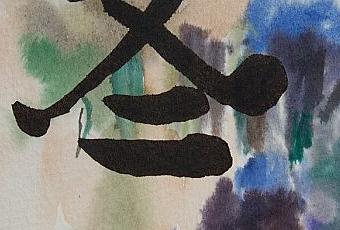 Aquarelle et calligraphie chinoise signifiant l'automne, 16 cm