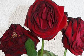 A leur 10ème jour, les roses de la St-Valentin sont définitivement fanées. Je les trouve magnifiques dans leur beauté du décatie.