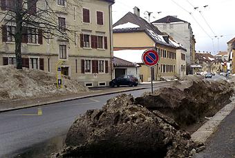 Le thermomètre étant -momentanément- monté au-dessus de zéro de jour comme de nuit, la fonte à commencé révélant -comme toujours- des milliers de kilos de neige et de glace immondes! Pas grave. J’aime aussi immortaliser la saleté.