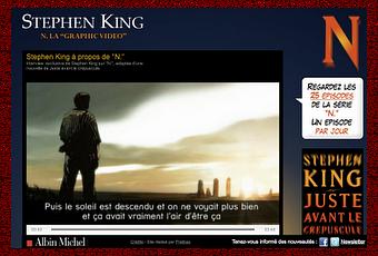 Nous en avions parlé il y a quelques jours : N est enfin là sur le site http://www.n-king.fr réalisé par l'éditeur Albin Michel à l'occasion de la sortie de Juste avant le crépuscule (Just After Sunset) de Stephen King en France.A partir de lundi, il y aura une grande campagne sur Europe 1 et sur le site d'Europe1. Nous en reparlerons : je trouve l'opération plutôt sympa.