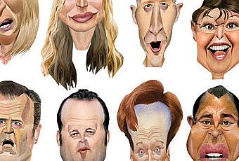 1) Kevin Bacon, acteur « Footloose ». 2) Barbara Streisand, alias Barbra Stressante. 3) Fergie, chanteuse à poil du groupe Black eyed peas). 4) Sterling Cooper, journaliste de CNN réalisant des sauvetages en direct. 5) Sarah Palin, Miss Amérique républicaine. 6) Kevin Smith, réalisateur fauché de « Clerks ». 7) Quincy Jones, producteur récemment endeuillé mondialement en public. 8) Mel Gibson, acteur réalisateur au coup de poing chrétien. 9)Vince Vaughn, acteur ex de Jennifer Aniston. 10) Conan O’ Brien (présentateur TV licencié à une heure de grande écoute). 11) Tigerwoods, Milliardaire golfeur humiliè en public à l’échelle internationale.12) Elin Nordegren, l’épouse bafouée de Tigerwoods.