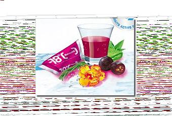 - à ma gauche, 1 litre de « -18° Détente », qui contient du jus concentré de pomme, du jus de betterave, du fructose, de l’extrait liquide de stigmates de safran, de l’extrait de fleurs d’oranger et de l’extrait de feuilles de mélisse.