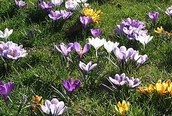 Car le crocus annonce le retour des beaux jours, mais en plus il se multiplie tout seul dans les pelouses où il forme de jolis parterres "sauvages" et donne un petit