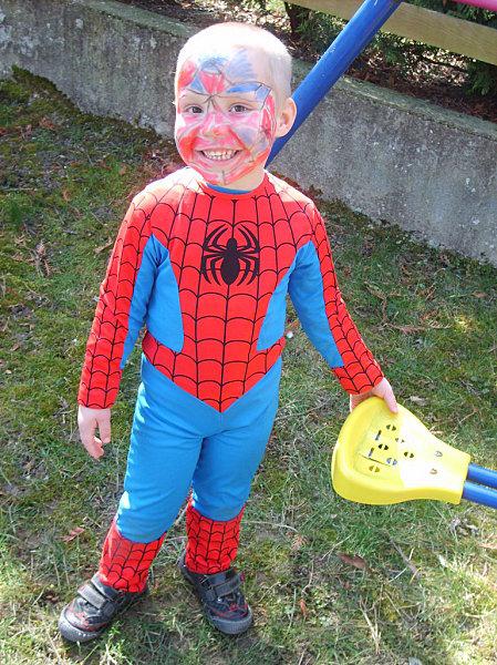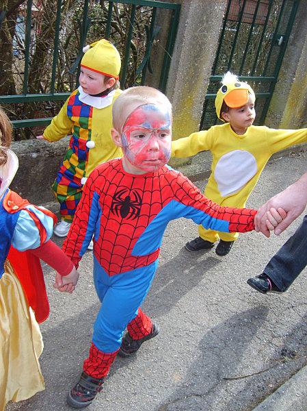 Voici quelques photos de mon bébé qui a fait son premier carnaval à l'école. Bien sur c'est lui qui a choisi son déguisement, et il a voulu PISS-DERMAN....