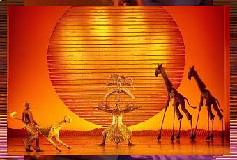 Le noir se fait. La salle devient silencieuse et là, le cri retenti. Un long cri déchirant, qui transperce la nuit de la savane... et un énorme soleil rouge, flamboyant se lève. Magnifique. Des animaux de tout genre débarquent alors de toute part, dans la salle, sous les cris d'émerveillement des enfants, se faufilant, dansant, hululant, sur scène. Des gazelles, des gnous, un éléphant... les costumes sont ingénieux, plein de petits trucs qui, sans nous faire oublier que derrières les armatures, les chiffons et les marionnette, il y a des danseurs et des comédiens, sont très réalistes. J'ai beaucoup aimé par exemple, les casques mécaniques qui peuvent être levés et abaissés pour accentuer l'illusion d'un félin se ruant sur sa proie, les girafes sur échasses et les gnous vaudous. A eux seul les costumes sont de petits chefs d'œuvre de poésie et de rêve, qui nous plongent dans cet univers enfantin, mis réaliste, mis rêvé, d'une Afrique pleine de couleur et de gaité, vivant au rythme des chants et respirant sous le vent, en phase avec la nature où seuls les animaux ont droit de cité (le roi lion est le seul Disney où l'homme n'est pas du tout évoqué). Et c'est là la réussite de cette comédie : ils se sont donné les moyens (financiers et artistiques) de coller au dessin animé du début à la fin, et en essayant de garder donc l'univers Disney de l'enfant à qui on raconterait une histoire.