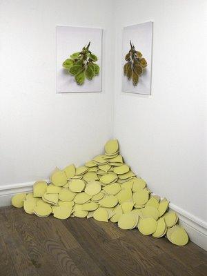 Marie-Andrée Côté, "Chute de feuilles" Porcelaine et bois, 2006.