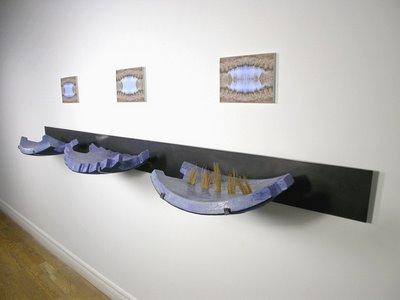 Marie-Andrée Côté, "L'eau à portée de main" Grès, métal et estampes numériques, 2005.
