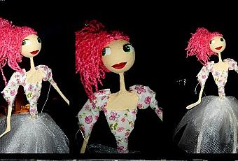 Alicia !En cette mode des "Alice aux pays des merveilles", j'ai voulu faire la mienne. Elle fait 40 cm de haut et porte une superbe robe en liberty. Il ne lui manque son collier pendule et ses collants rose mais elle est pratiquement finit...