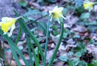 Les jonquilles, Narcissus pseudonarcissus, sont maintenant plus nombreuses. Je dois avancer avec précaution elles ont envahi les allées. Je les déplacerai après la floraison. Dans quelques jours tout le terrain sera jaune.