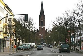 Vers les dix heures du matin, lorsque je reviens du travail en S-Bahn, je suis rarement très frais. Parfois encore endormi, parfois un poil trop réveillé à cause de deux ou trois malheureuses tasses de café en trop, je ne pense qu’à mon lit, aux volets que je vais fermer. L’église sur la photo n’est pas très belle mais je l’aime bien : lorsque je sors de la gare, son clocher rouge sombre signale que mes oreillers ne sont plus très loin. Je vais bientôt pouvoir passer en mode horizontal.
