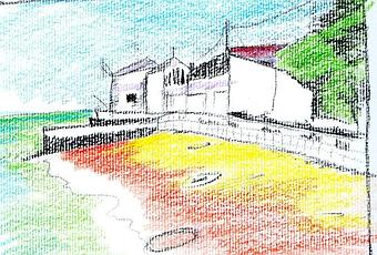 Lucas s’aventura dans les ruelles blanches sans remarquer que le vieux gardien d’ascenseur empruntait le même chemin, à quelques pas derrière lui. Le village semblait complètement inhabité, comme si un cataclysme l’avait vidé. Lucas eut un frisson quand il entendit comme des bruits de pleurs, qui venaient du porche de l’église. En s’approchant il vit trois femmes d’âges différents, pelotonnées les unes contre les autres dans l’encoignure du portail. Interdit, il allait leur adresser la parole (mais en quelle langue ?) quand il sentit la présence du petit vieux juste derrière lui. Le petit vieux hochait la tête d’un air triste. Lucas comprit le mot « terremotto ». Ces femmes pleuraient qui son mari, qui son père, qui son amant. Lucas n’avait pourtant pas entendu parler de tremblement de terre ces derniers temps en cet endroit. Pourtant il se dit que le grondement qu’il entendait était quand même bien anormal. Il eut peur et se sauva à toutes jambes dans la rue qui s’élargissait au-delà du sommet du village, redescendant vers une vallée. Il lui semblait qu’en effet le sol tremblait sous ses pas. il n’arrivait pas à comprendre comment il pouvait y avoir certains signes de séisme sans que le sol ne s’ouvrît entièrement ni que les édifices ne s’effondrassent.