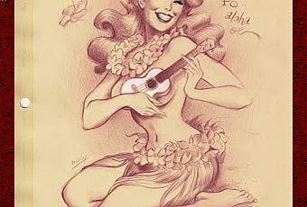 Aloha! ;)Aujourd'hui un dessin qui sent la fleur de monoï, le sable chaud et qui goûte le daiquiri..! Ce dessin est réalisé sur un papier qui date des années 60 (j'en ai d'ailleurs toute une pile, alors attendez-vous à en voir tout un tas d'autres!)