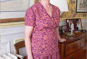 Le résultat correspond à mon attente. J'ai coupé des manches courtes car j'avais un métrage assez serré : 3 mètres en 140, mais la jupe à elle seule demandait deux hauteurs soit 1,50m, plus la ceinture. Le plus compliqué a été de caser le biais pour qu'il soit assez long et facile à nouer dans le dos. Il est en quatre morceaux.