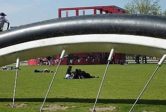 Parc de la Villette, la Bicylcette ensevelie de Claes Oldenburg.