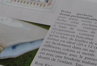 A l’honneur donc dans la page shopping spéciale enfants du bimensuel Mains et Merveilles, Point de croix la pochette à dessin personnalisable, l’une des créations originales de Rose Khãki pour jeunes enfants.