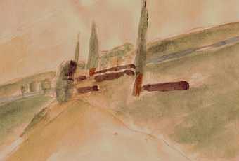 L'idée m'est venue ce matin, face au brouillard et à la mauvaiseté du monde (les dernières infos) de me constituer un petit musée de poche en recopiant des tableaux aimés que j'aimerais bien emporter avec moi partout où je vais. J'ai commencé avec La route à midi de Thierry Vernet, évocation provençale de je ne sais où, dont je ne possède à vrai dire qu’une reproduction, mais fidèle. Pourtant une copie personnelle m’importe aussi, même de qualité inférieure, puisque c’est mon propre regard que j’ajoute à celui du peintre, à tel moment et en tel lieu. C’est un peu comme un commentaire de l’œuvre, dans la foulée, une note à la volée - et je me rappelle alors quatre autres copies commises, à la gouache, une d’après Rouault et trois d’après Czapski…