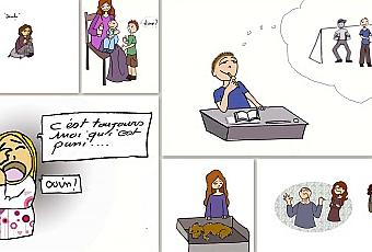 Voici une p'tite série de dessins pédagogiques pour soutenir un exposé sur le métier de psychologue. On va voir un psychologue pour enfant, quand on est triste, en colère...et plein d'autres situations, j'ai pas tout mis. C'est plaisant de travailler sur commande et les enfants ont aimés mes dessins ! Pour ma part, je suis pas entièrement satisfaite du coté "photoshopé" du dessin, j'aurais voulus plus de volumes et de fluidité dans le trait. Enfin bon, c'est un début !