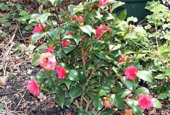 Ce camellia est encore tout petit, il a été planté cet hiver mais il se fait remarquer car il est très florifère.