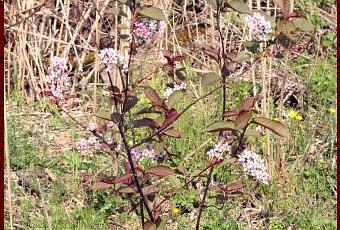 'Colorata' a un très beau feuillage rouge et des fleurs roses. Il est très beau, très sain, il fleurit tous les ans, mais en 5 ans il n'a pas du tout grandi. Encore un des mystères de Trifouilly. Il mesure environ 1m40. Il a donc fait partie des transplantés à Romilly en fin d'hiver.