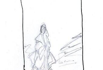 Comme il faut bien commencer par quelque chose, je commence par le perso, parce que vu le bordel qui s'annonce en arrière plan, ben le perso c'est plus sympa. C'est aussi et surtout parce que de sa position dans l'image va dépendre l'équilibre de l'illustration. Je fais en sorte que sa taille soit proportionnelle par rapport aux persos des 3 tomes précédents ( bon, je dois avouer que je n'y suis jamais arrivé...)