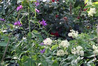 Je vais vous montrer d'abord ma lunaire bisannuelle, Lunaria annua ou biennis. On l'appelle monnaie du Pape à cause de ses siliques nacrées très décoratives dans les bouquets et qui peuvent se garder longtemps. Mais ce n'est pas son seul intérêt, le feuillage est beau et frais et les fleurs lumineuses.