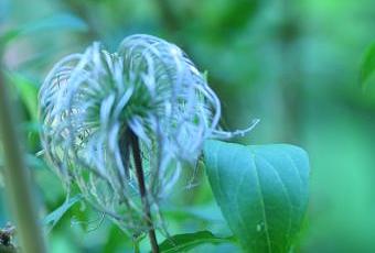 En mars j'ai planté dans un très grand pot dont j'ai enlevé le fond et que j'ai rempli de terre consistante un forsythia alors en fleurs et deux clématites pour lui grimper dessus. Clematis alpina n'est plus en fleurs mais elle a de beaux fruits plumeux :