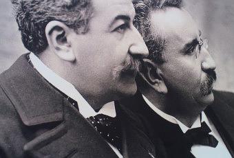 Photo perso des frères Lumière dans le parc du musée du même nom.