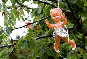 Ce n'est pas pour attirer les pédophiles, et encore moins les petits enfants, que j'ai installé des poupées dans le cerisier, mais c'est pour faire fuir les pies, évidemment.