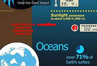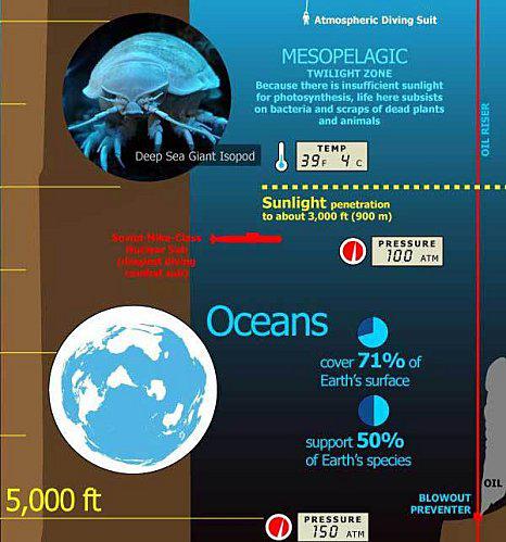 Excellente infographie pour aider à la visualisation de l'amplitude entre le point le plus haut sur terre et le plus bas dans les profondeurs océaniques. Une bonne manière d'appréhender les difficultés qui se posent pour arrêter la fuite de pétrole de Deep Water. Très impressionant, après le clic.