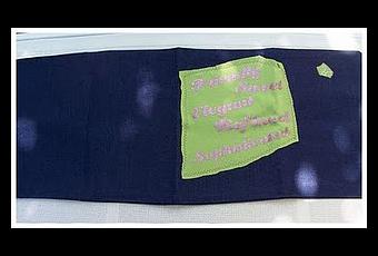 Val voulait une "île de coussin" pour se reposer au jardin.Val est tellement généreuse que beaucoup de copinautes ont répondu.Modestement je lui ai fait ceci, un coussin duo en jeans avec les traits de caractères de taureau (car elle l'est) :"FriendlySweetElegantRefinedSophisticated"
