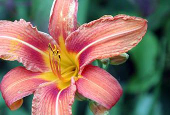 L'hémérocalle est une monocotylédone (les plantes les plus récentes dont font partie les orchidées). Elles sont donc trimères avec comme formule : 3 sépales, 3 pétales, 2x3 étamines, 3 carpelles. Regardez les pétales. Il y en a 3 au premier plan. Ils sont plus larges que les autres et ont un bord ondulé. Ce sont les vrais pétales. Les 3 autres situés entre eux mais insérés derrière sont les sépales.