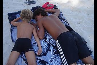 En été, compte-tenu de notre principale activité, il est difficile de se passer de serviettes de plage. En principe, c'est une chacun mais de temps en temps on partage (ils sont chous, non?...).