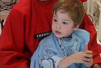 Jeudi dernier, nous avons encore amené Théo chez la coiffeuse. Il a les cheveux qui poussent à une vitesse assez impressionnante, et sont super épais. Il commençait à mourir de chaud avec toute cette épaisseur sur la tête. Alors cette fois-ci, on a utilisé les grands moyens : la tondeuse ! Les cinq premières minutes se sont plutôt bien passées, mais à la sixième, il a commencé à en avoir marre (note pour moi-même : ne plus aller chez la coiffeuse après une journée à la crèche). Heureusement, Cécile est rapide et efficace, et a pu faire une coupe à peu près terminée. Il n'y a que la houpette devant qu'elle n'a pas pu faire, la mèche est un peu trop longue, j'essayerai de la couper moi-même, enfin, si Môssieur veut bien !!