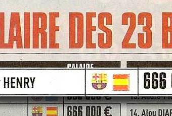 Devoirs de vacances avec Thierry Henry : Le pote de notre mini-sident, a signé chez les taureaux rouges de la grosse pomme. Il va en croquer... Il gagnait déjà bien sa vie à Barcelone, voir ci-dessus. Se souvient-il qu'il doit ses copieux émoluements catalans au titre de champion du monde obtenu au sein de la FFF en 1998 ?