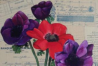 Peignez des fleurs sur du papier, du carton, des emballages. Dessinez des bouquets sur des enveloppes, de vieilles factures . Allez ! .... à vos pinceaux !Peintures et collages de Colette