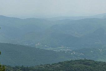 Le paysage des Cévennes par temps brumeux et nuageux, sans retouche.
