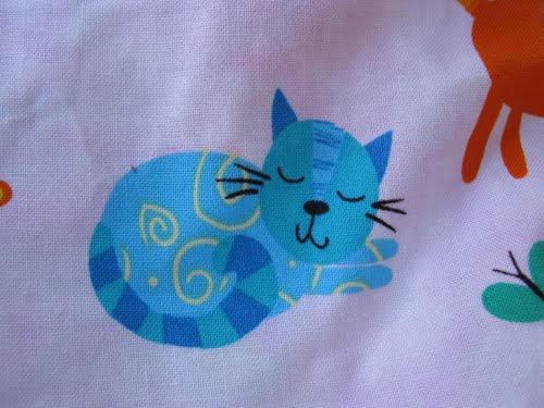 C'est sans doute le motif chat que je préfère sur ce sac… C'est le seul à dormir alors que tous les autres font des galipettes autour de lui !!